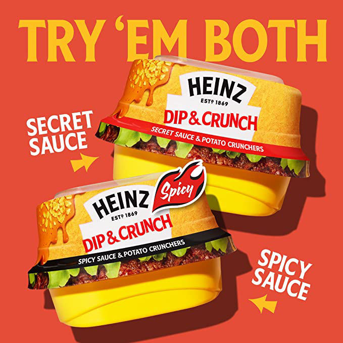 To support the launch of a new Heinz product, Dip & Crunch, we created a set of vibrant social assets that showed off the fun and exciting new product for a brand that's synonymous with burgers and condiments.